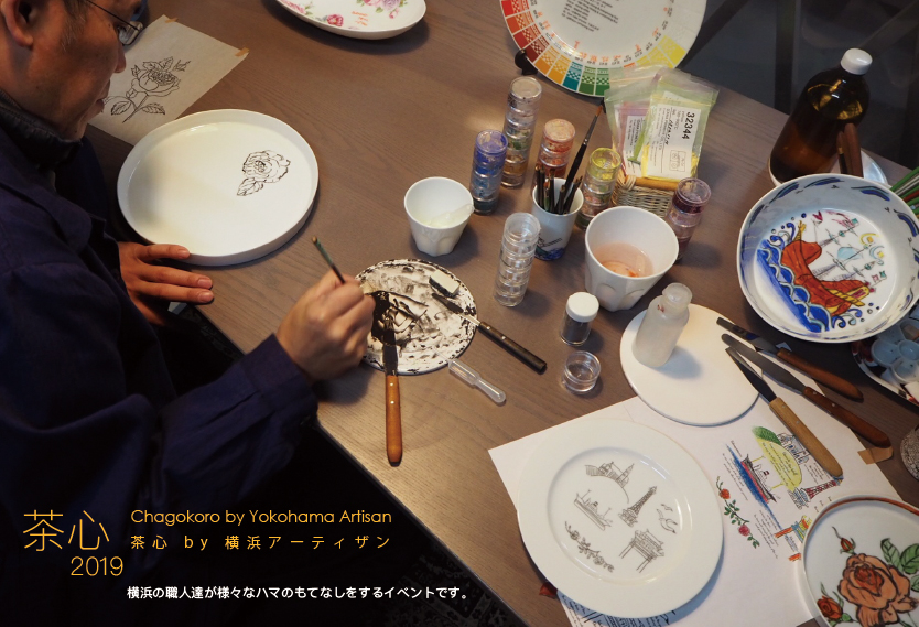 イベント期間中、元町茶倉にて増田アーツ&クラフツの器(新・横濱南蛮絵図、よこはまフォークロアなど)、増田博一の一点もの器と絵、更に今回は増田アーツ&クラフツが買い付けて来たアジアの雑貨も販売いたします。これらを展示しながら私達がビジョン(VISION)する横浜を茶倉の空間で飾り付け(FURNISH)致します。