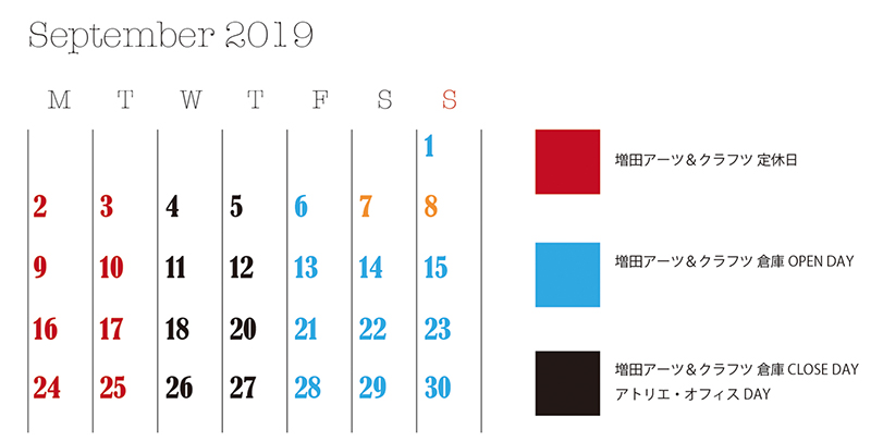 翌月8月は増田アーツ&クラフツWAREHOUSEは休業します。会場内は冷房の施設が無く、その熱い環境の中、お客様にマスク着用のお願いは酷であると判断しましたので一度閉めます。 気候が穏やかになったら再開したいと考えておりますが、今後の日程は全くの白紙です。つきましてはしばらく無期限の休業といたしますが、再開日等決定しましたら弊社HP及びSNS(Facebook・インスタグラム)で報告します。